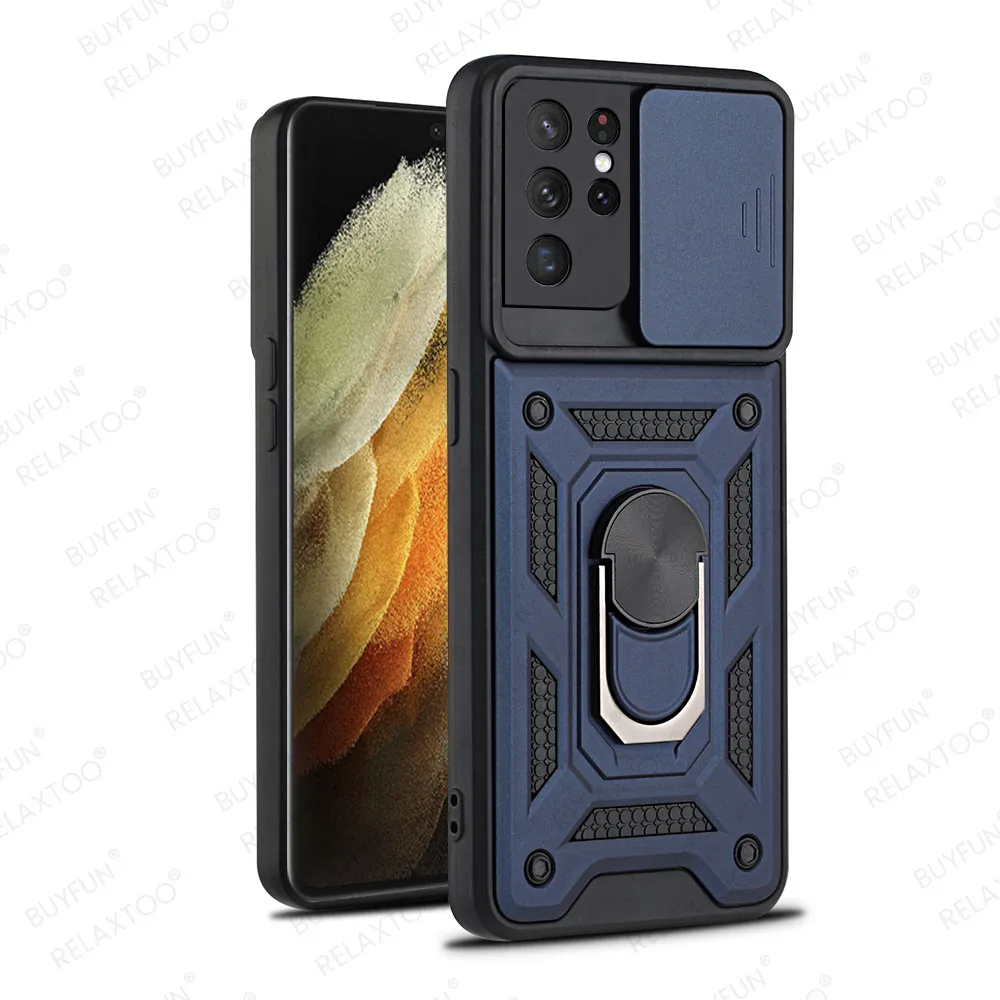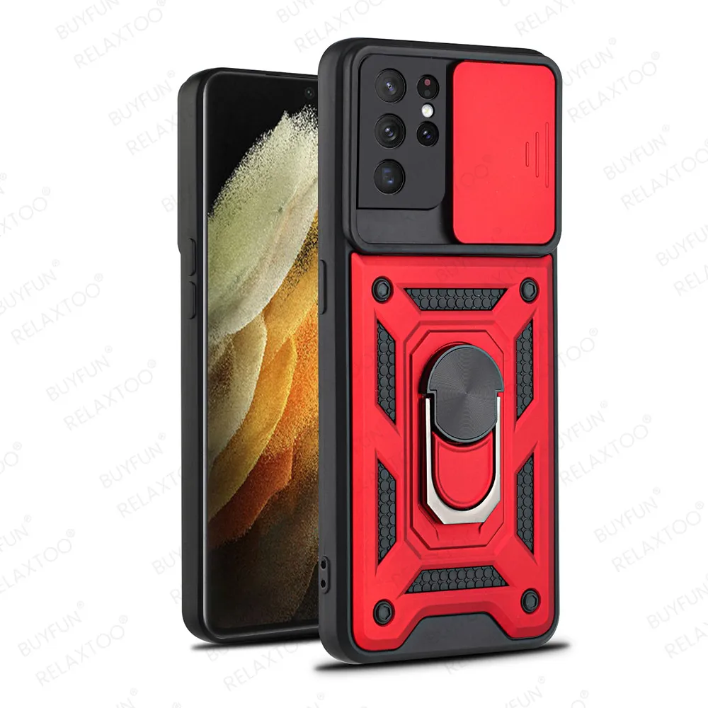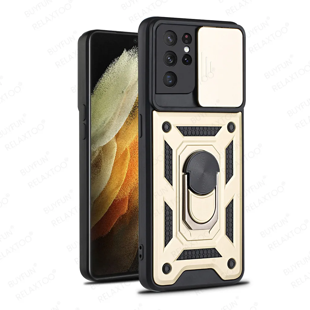 Защитный чехол для Samsung Galaxy S21 Ultra Case Slide Window Camera S 21 FE Plus S21Ultra 5G автомобильный чехол с магнитным кольцом и подставкой