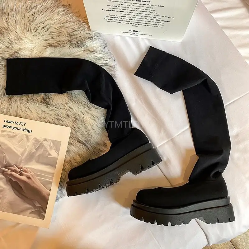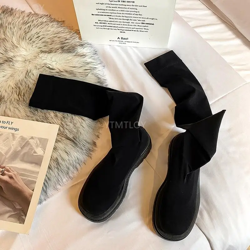 Женские зимние сапоги выше колена 2022 Ytmtloy без застежек Ботинки Челси с круглым носком на квадратном каблуке женские длинные пикантные сапоги