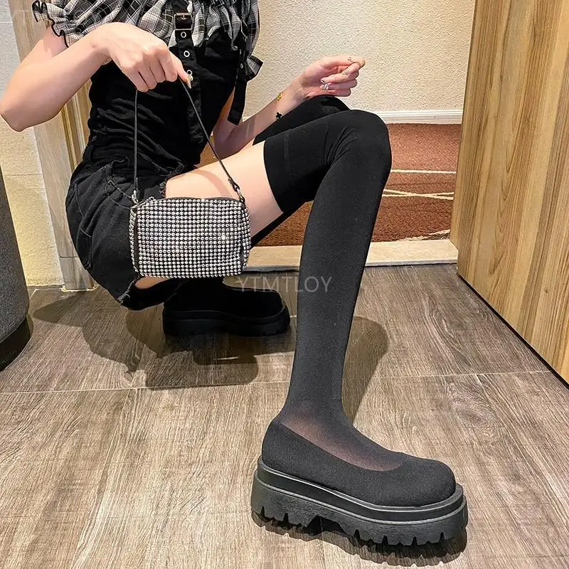 Женские сапоги выше колена, высокие сетчатые сапоги, прозрачные сан...