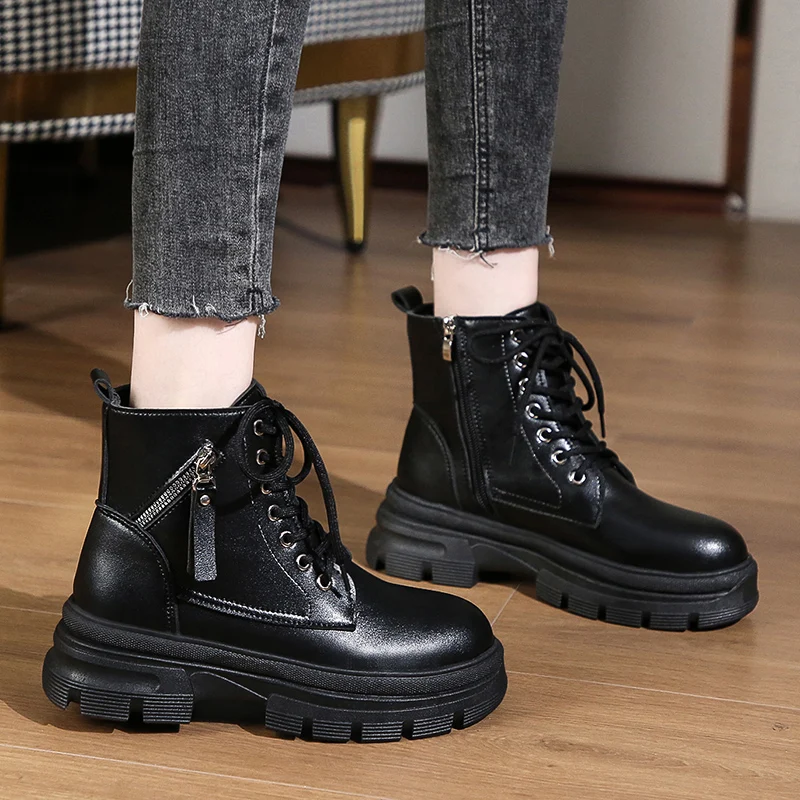 Женские ботинки, короткие ботинки на молнии с пряжкой, ботильоны, черная обувь на шнуровке, мотоциклетные ботинки, ботинки Martin, женские ботинки 2021