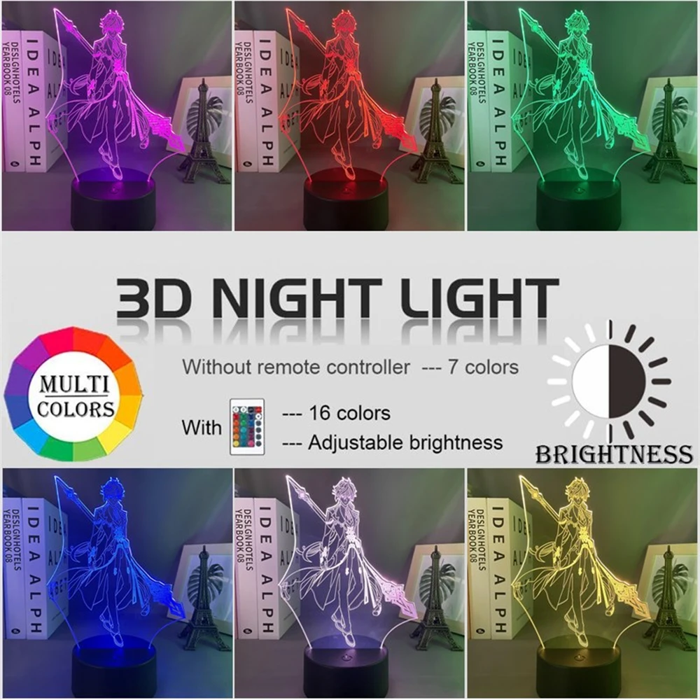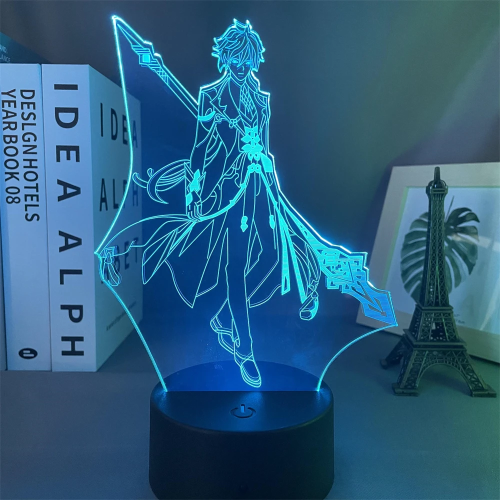 Популярная игра Genshin Impact акриловая 3D иллюзия светодиодный но...