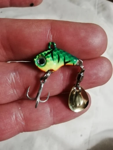 приманка работает, за пять минут взял двух шнурков и двух окуней. по щуке работает уверенней, с окунем много пустых полевок и сходов. в общем, приманкой доволен.