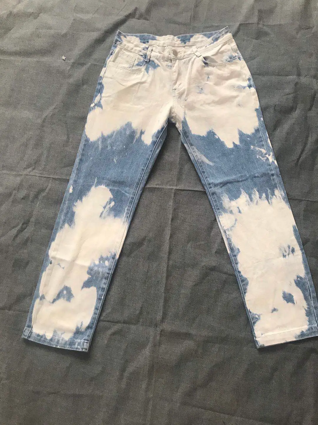 Джинсы мужские прямые с рисунком облаков и молний, брюки из денима ...
