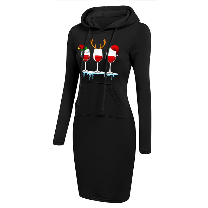 Женское рождественское платье с капюшоном, толстовка с длинным рука...