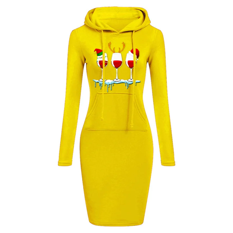 Женские Желтые рождественские платья, зима-осень, толстовка с капюш...
