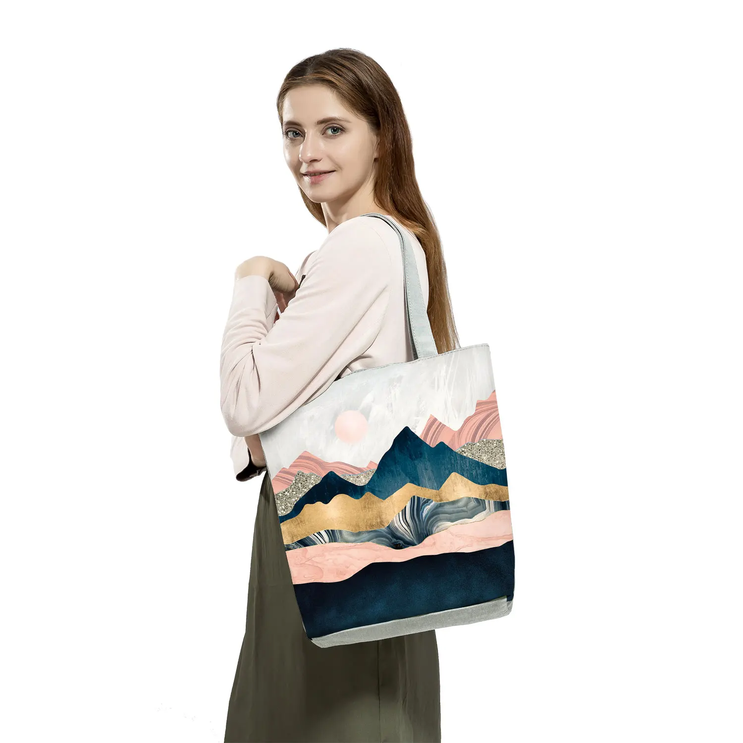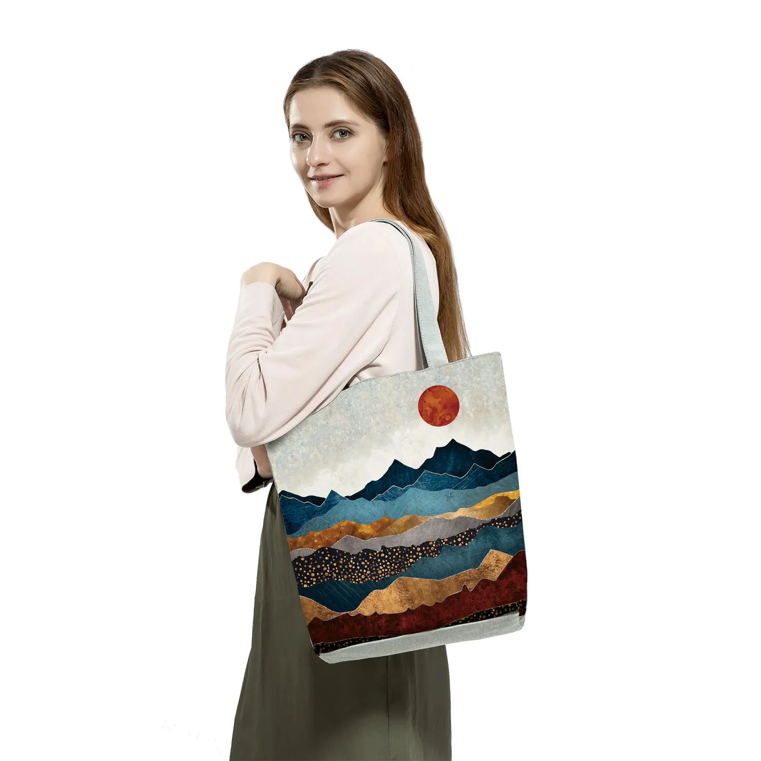 Картина маслом горный лес Printi Повседневная Сумка-тоут складная сумка шоппер хозяйственные сумки женская сумка для отдыха Пляжная уличная