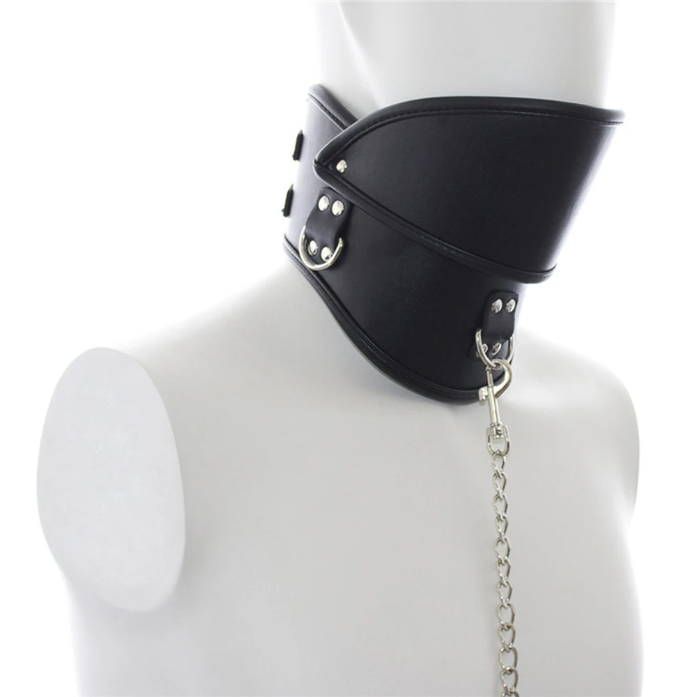 Черный готический шейный воротник, бондаж, панк-ограничитель с цепочкой, поводок, БДСМ шейный корсет, ролевые игры для взрослых, эротические секс-игрушки