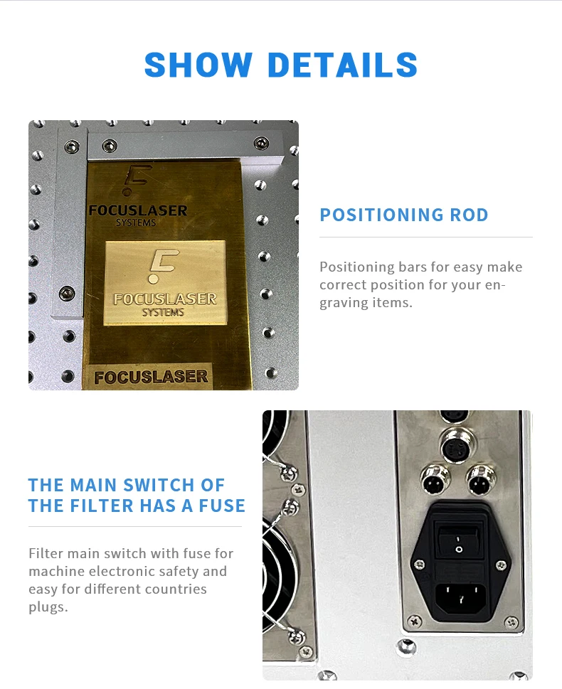 Мы поставляем программное обеспечение с лучшим USB Kingston для вашей безопасности данных.Запасные части для резервного копирования, такие как кнопка резервного копирования для аварийного использования.Позиционирование стержней для легкого определения правильного положения для ваших гравировальных изделий.