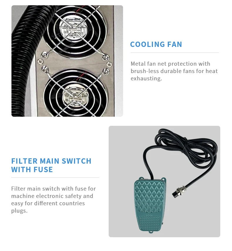 Прочная защитная труба для волоконного кабеляПрочный и прочный ножной переключательГлавный выключатель фильтра с предохранителем для электронной безопасности машины и легко для штепсельных вилок разных стран.Металлическая сетчатая защита вентилятора с бесщеточными долговечными вентиляторами для отвода тепла.