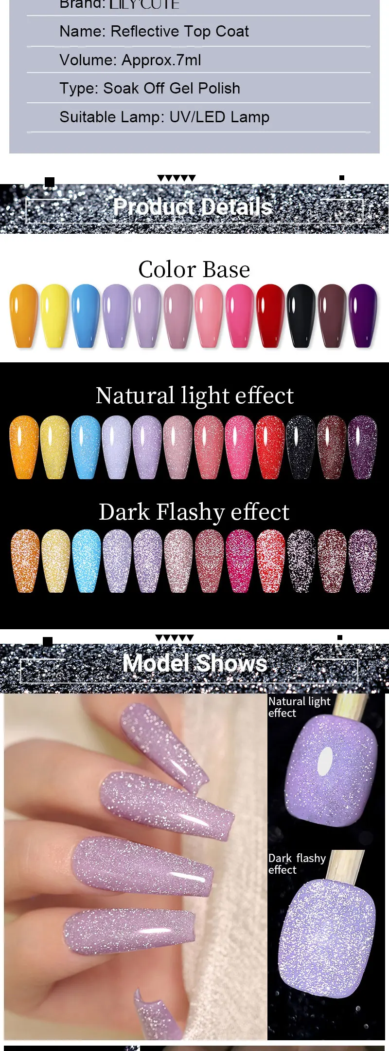 LILYCUTE 7 мл Светоотражающая искусственная полировка Радужный эффект полуперманентный отмачиваемый УФ-гель для фотографий