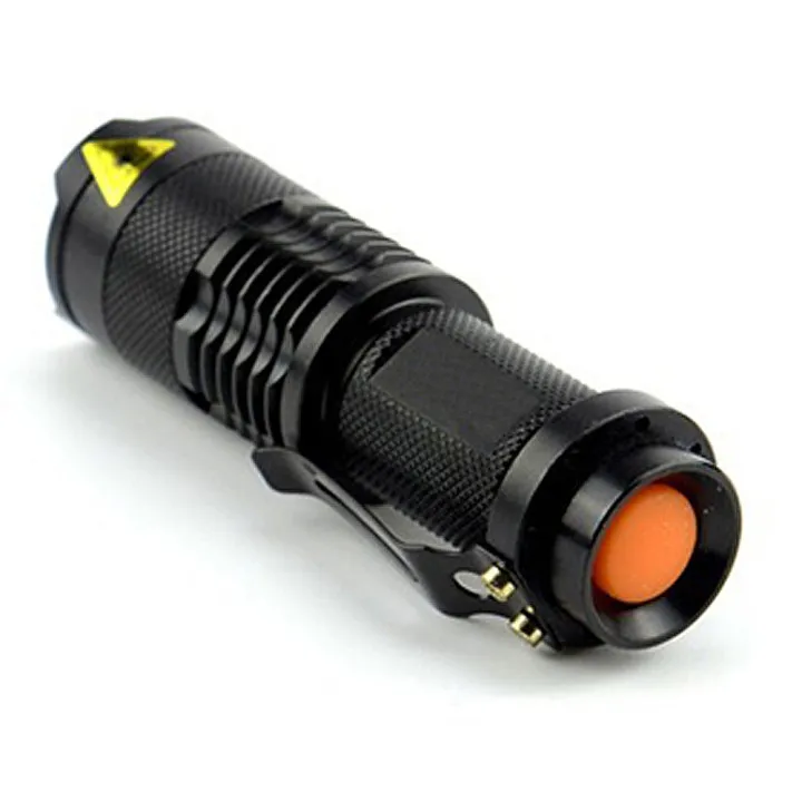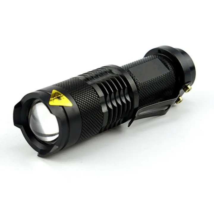 Супер Мини размер, яркий, ослепляющий эффект. Противоскользящий дизайн и водонепроницаемый дизайн. Выходная яркость может достигать 2000 люменов (макс.). Регулируемый диапазон фокусировки для различного использования, растягивается для регулировки фокуса. Зажим для удобной переноски. Рабочее напряжение широкое и может использовать батареи в самой большой степени. Подходит для охоты, велоспорта, альпинизма, кемпинга и активного отдыха и т. д.