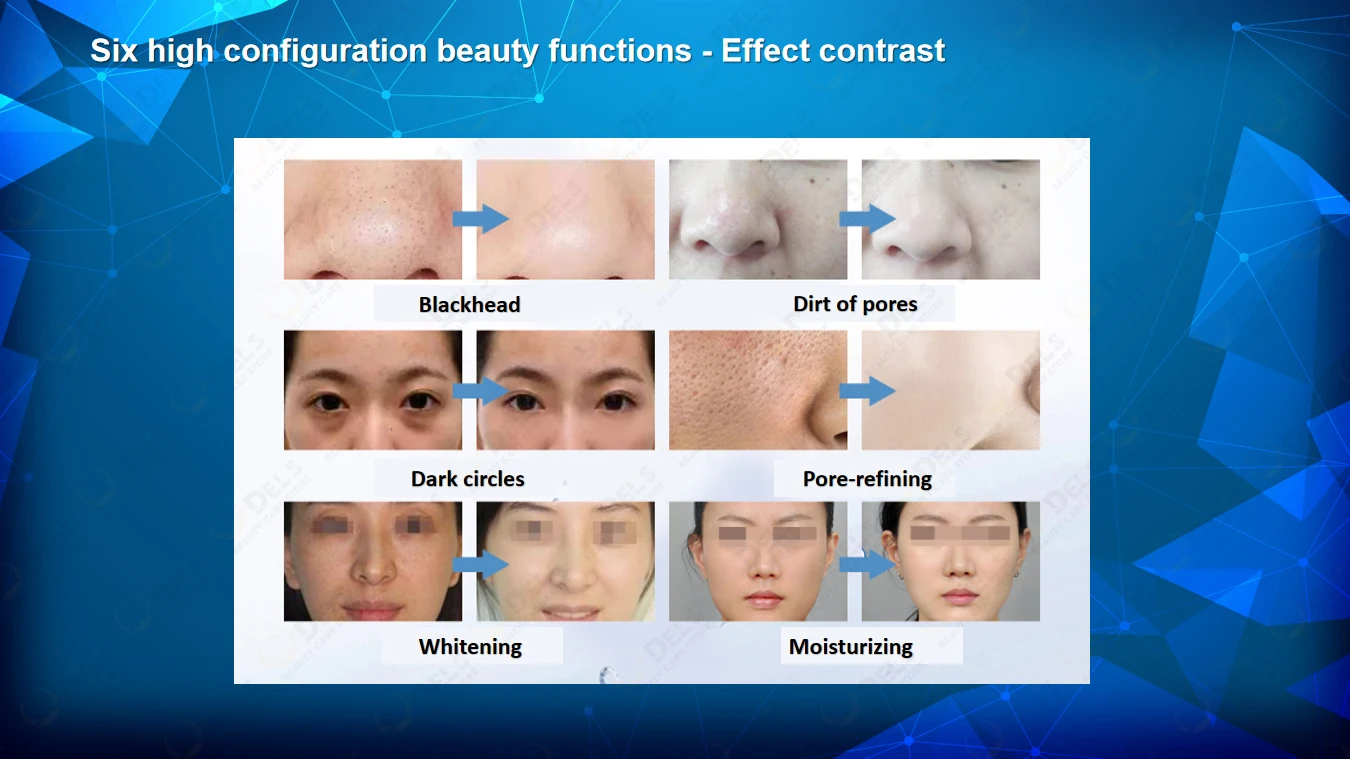 1: гидродермабразия, подходит для обычной или чувствительной кожи, или кожи с ушами, Комедо, акне и т. Д.2: чистка и стирка: глубокая очистка, прозрачный Рей кожи, минимально Инвазивный шрам и очистка угрей, удаление глубокой грязи кожи3: эффективное и прямое увлажнение: достаточное количество молекул воды для кожи во время очистки4: используются продукты по уходу за кожей для достижения большого разнообразия целей лечения, таких как удаление морщин/пигментации, Осветление кожи и отбеливание