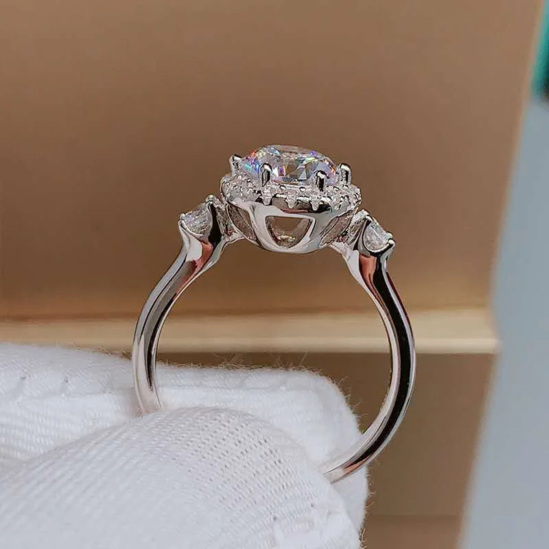 Популярное круглое блестящее серебряное кольцо стразы из циркона с прозрачным кристаллом CZ Стильные ювелирные изделия для свадебных помолвок