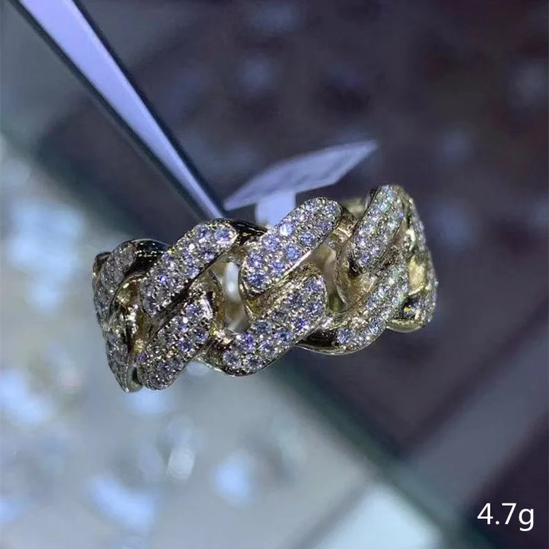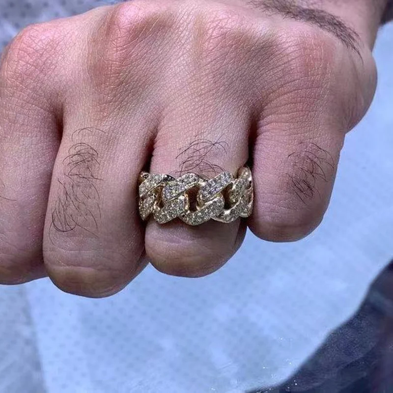 Модные мужские и женские кольца, Золотое кольцо в стиле хип-хоп и панк с цирконом, кубинская цепочка, массивное кольцо артиста для женщин и мужчин