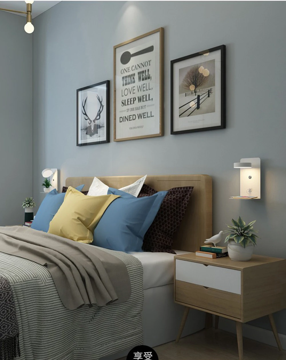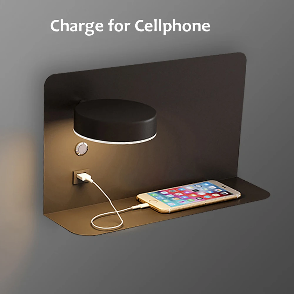 Светодиодная настенная лампа с выключателем для спальни, 5 В, 2,1 а, с USB-зарядкой