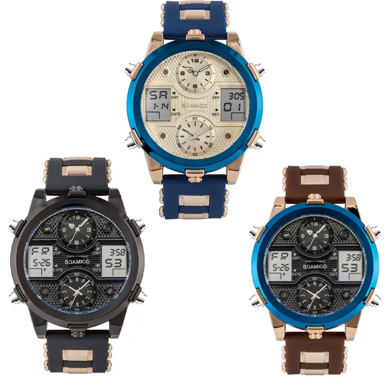 Часы бренда BOAMIGO состоят из обновленных классических часов для более модного потребителя.Часы разработаны с большими чехлами, специальной и спортивной кожей, резиновыми или металлическими ремешками, чтобы создать свежий вид.И наши часы сочетают в себе качество, передовую моду, дух спорта и ценность.А также модная и повседневная одежда для повседневного ношения. Наши часы всегда с хорошей стоимостью, но недорогой ценой.Добро пожаловать к любому клиенту, чтобы насладиться нашими часами и стать более модным.