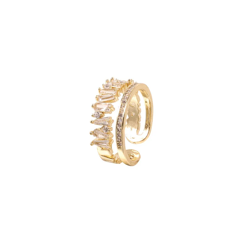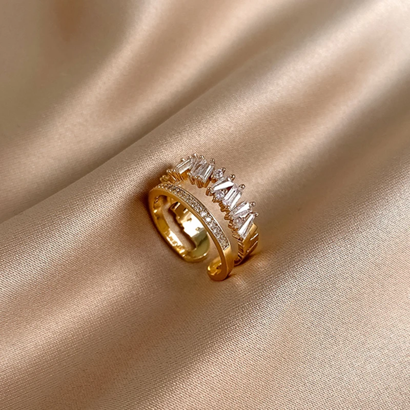 Роскошные золотые двойные студенческие открытые кольца с цирконом д...