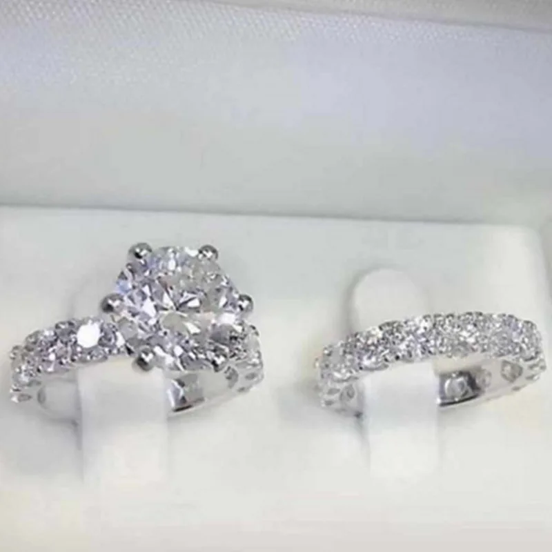 2 шт.компл. женские Свадебные обручальные кольца серебряного цвета стильные классические ювелирные изделия с белым кристаллом Стразы из циркония
