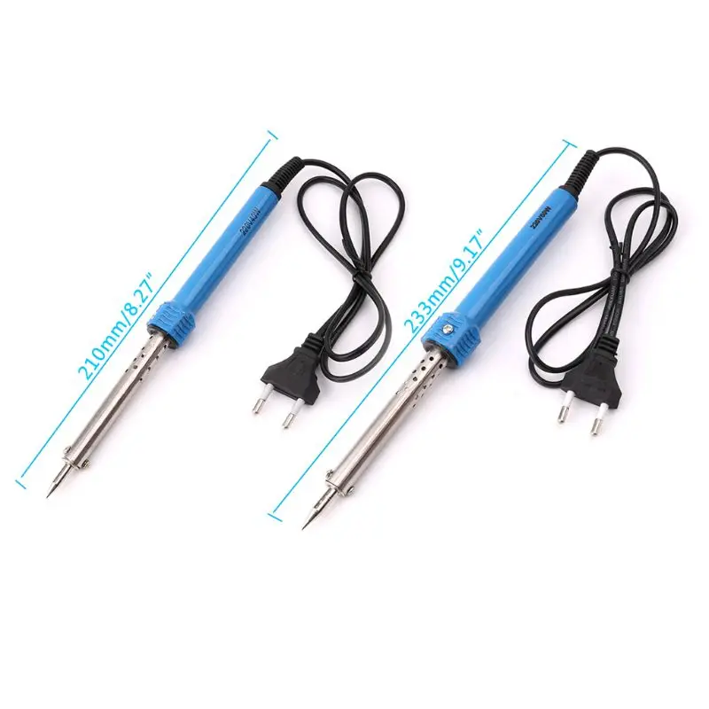 100% новый и высокое качествоОсобенностиЭто внешний нагреваемый Электрический паяльник со стандартной вилкой европейского стандарта и пластиковой ручкой.Профессиональный паяльный инструмент отлично подходит для бессвинцовых паяльных полупроводников.Легкий и простой в использовании. Ручной тип с простотой в эксплуатации.Инструменты для обслуживания материнской платы компьютера.ПараметрыНапряжение: 220 ВМощность: 40 Вт, 60 ВтТип вилки: стандарт ЕСМатериал: пластик и железоРазмеры: Длина: 210 мм/8,27 дюйма, 233 мм/9,17 дюймаЦвет: серебристый, синий, черныйКоличество: 1 шт.Примечание: 1. Допускается погрешность в 0-1 см из-за ручного измерения. Пожалуйста, убедитесь, что вы не возражаете, прежде чем сделать ставку.2. В связи с разной конфигурацией разных мониторов изображение не отображает фактический цвет товара. Спасибо!Посылка включает в себя:1 Электрический паяльник