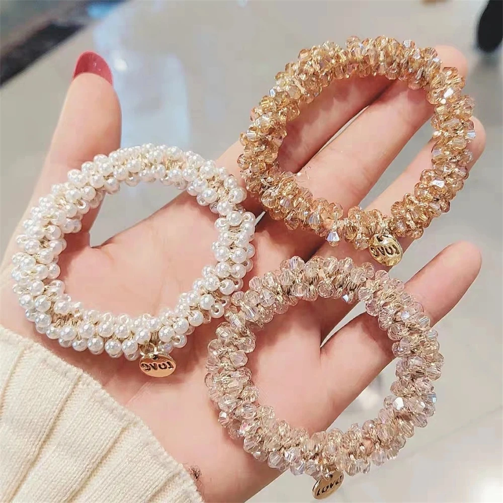Женская жемчужная разноцветная резинка для волос с бусинами, эластичная резинка для волос, простые металлические простыни, резинки для конского хвоста, головной убор для женщин, аксессуары