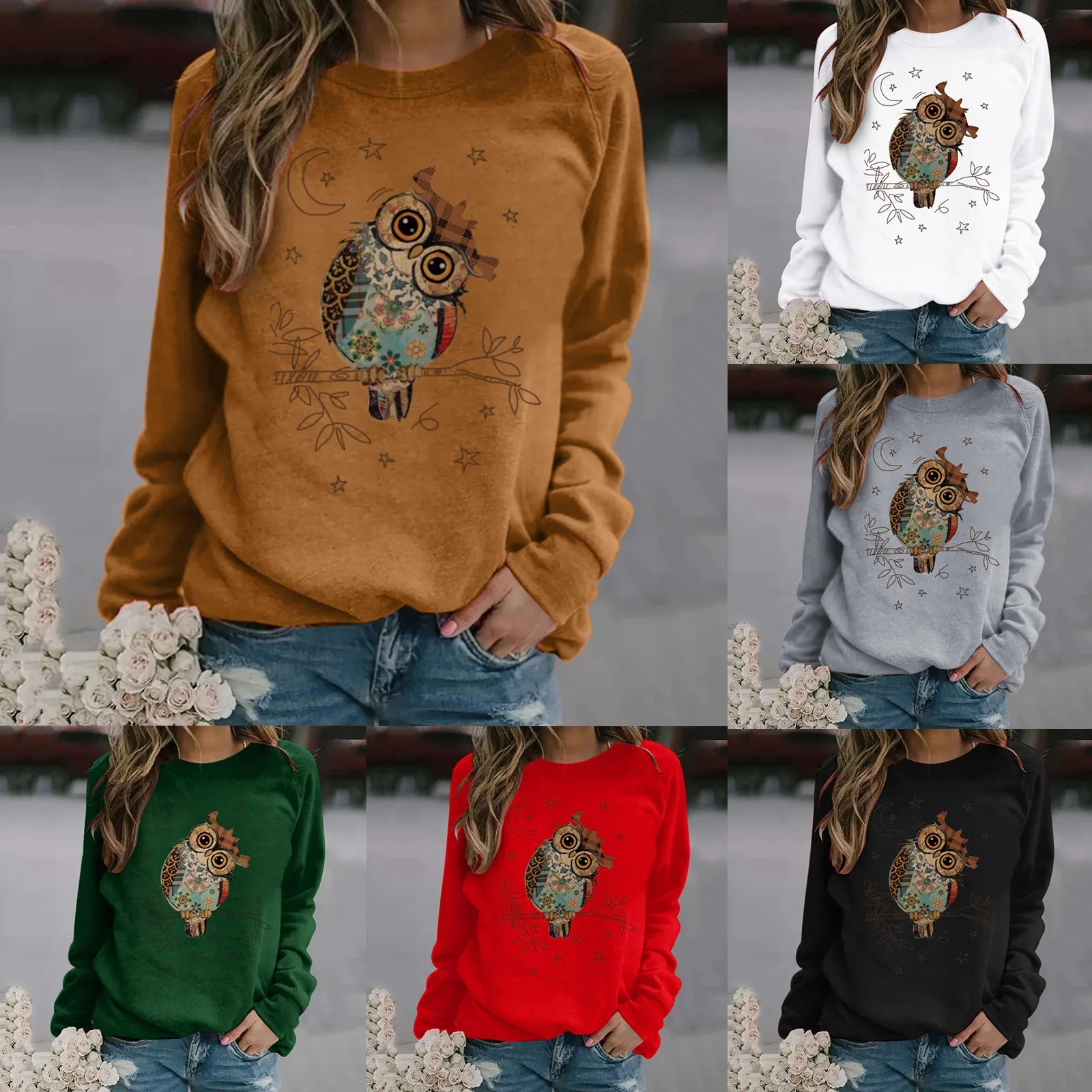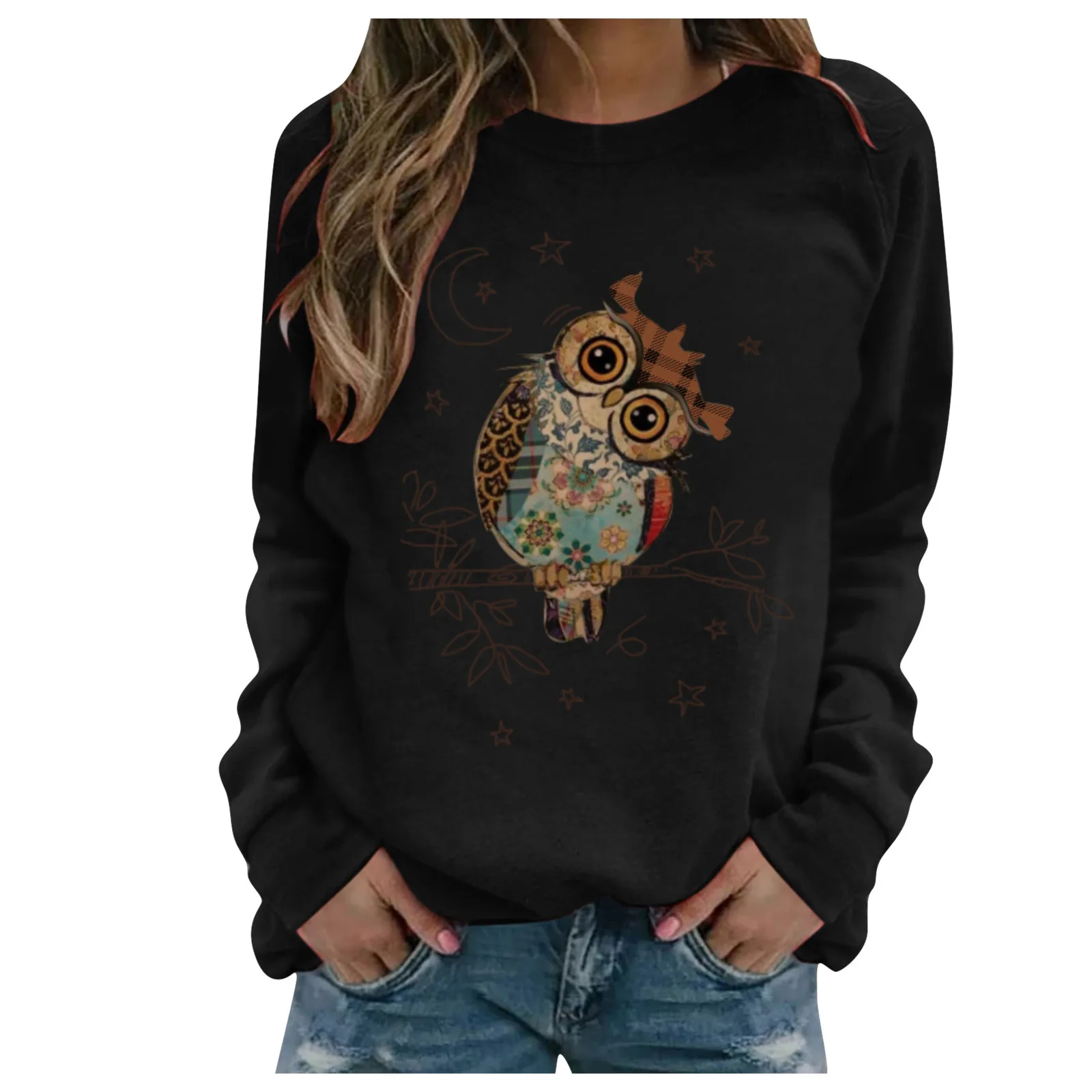 Женские толстовки с принтом совы, пуловер с длинным рукавом, повсед...