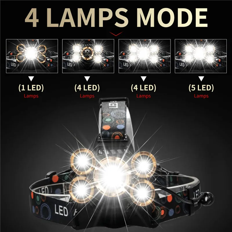 Новый XML 3/5 светодиодный налобный фонарь супер яркий Масштабируемые Водонепроницаемый фар Перезаряжаемые фара Применение 18650 Батарея