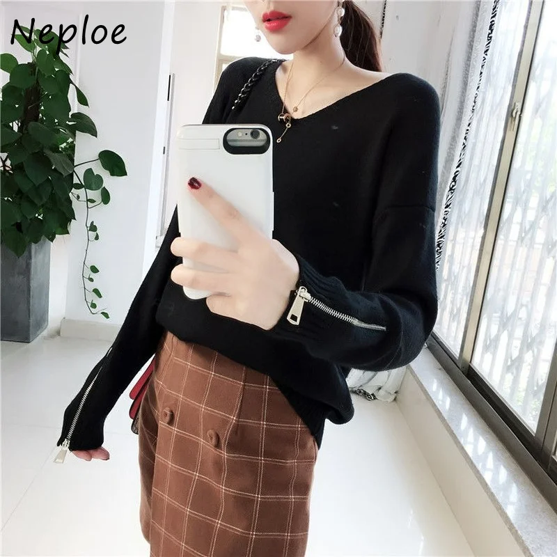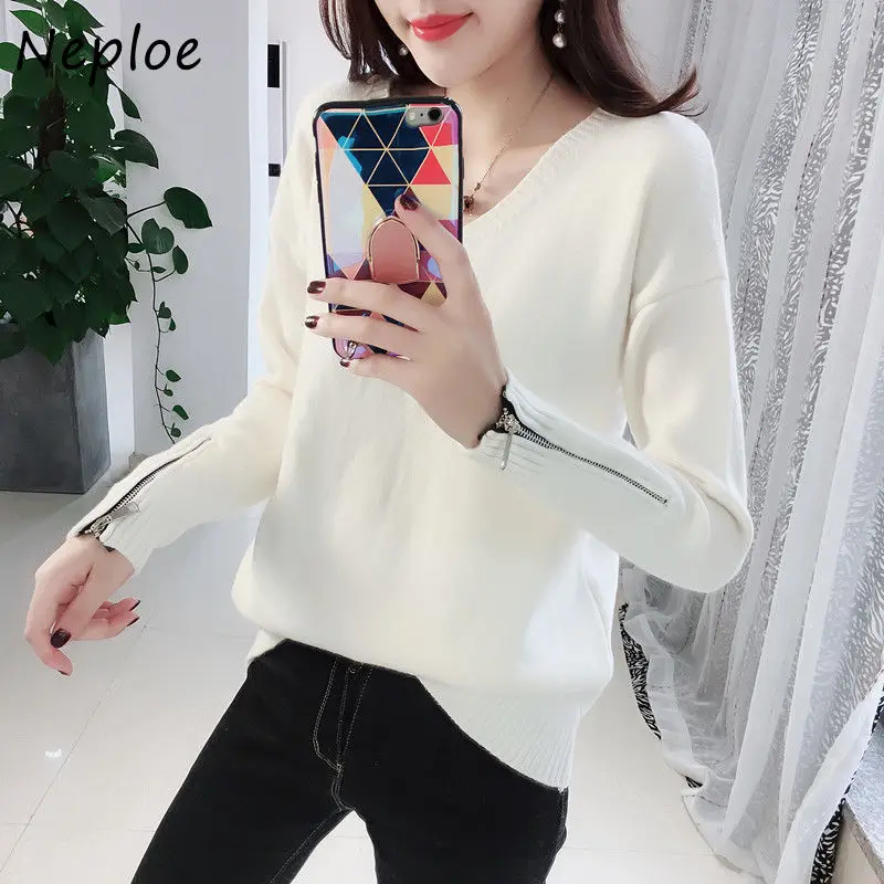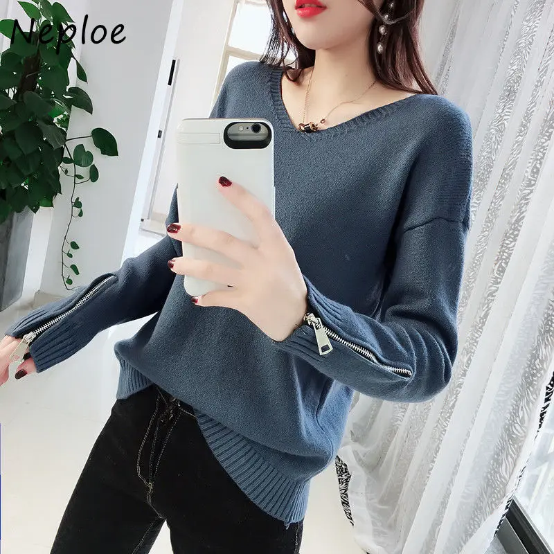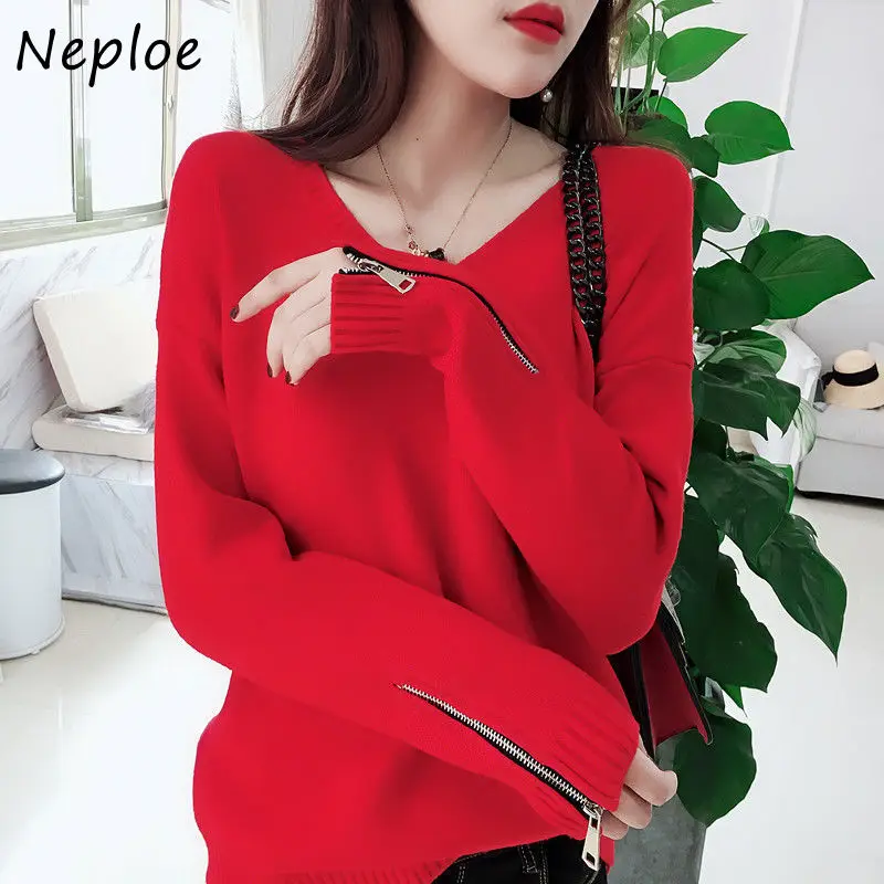 Однотонный свитер Neploe с V-образным вырезом, женский свободный пуловер, вязаные топы с длинным рукавом, женские осенне-зимние новые модные свитера 2022