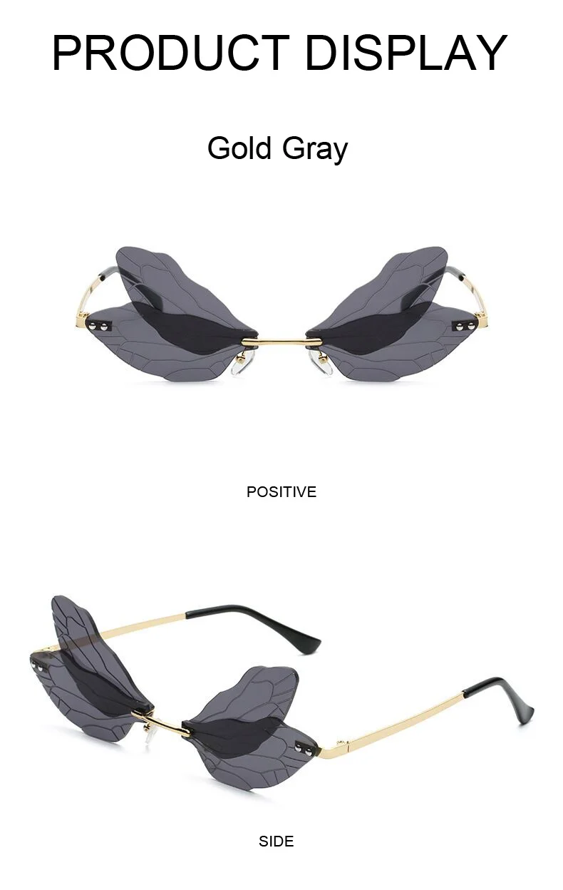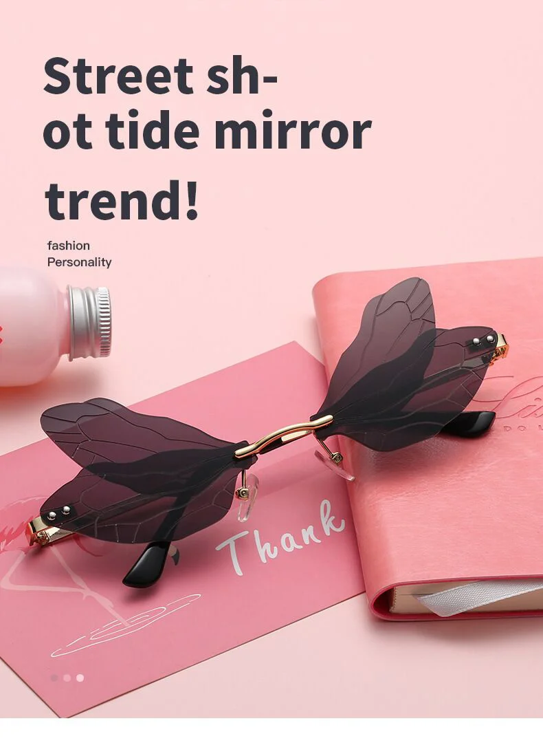 Очки солнцезащитные женские без оправы, дизайнерские модные брендовые солнечные очки со стрекозой, роскошные без оправы