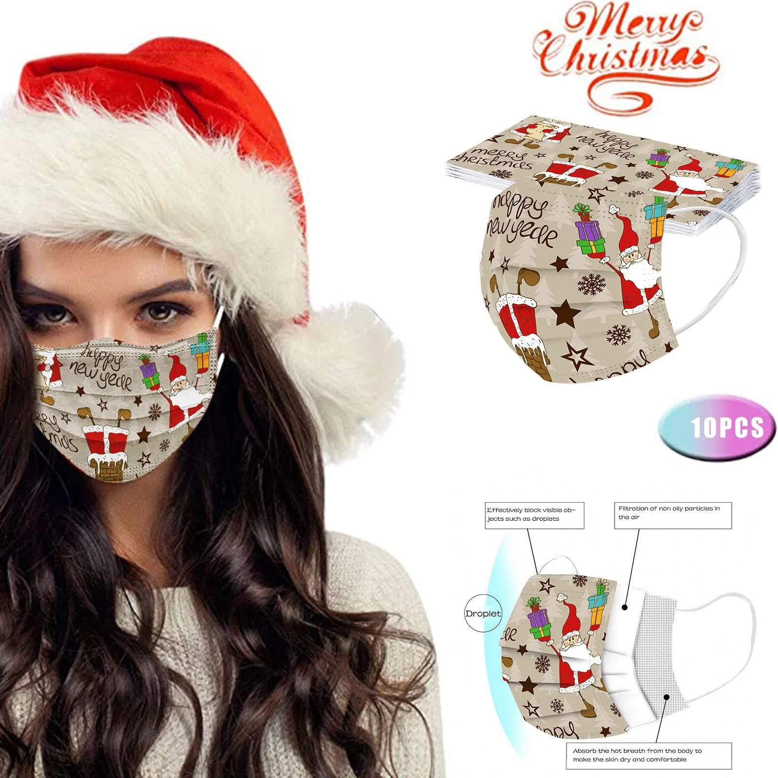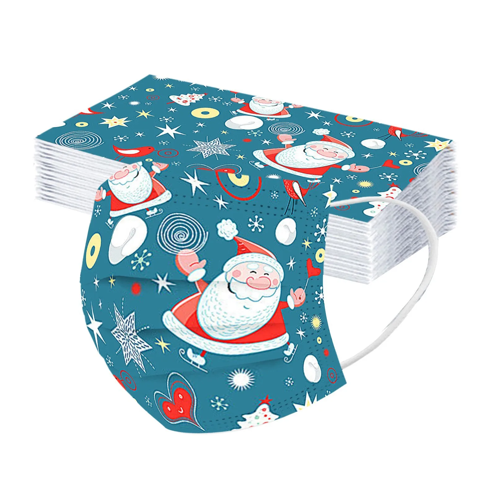 50 шт., одноразовая Рождественская маска для лица для взрослых, 3 слоя
