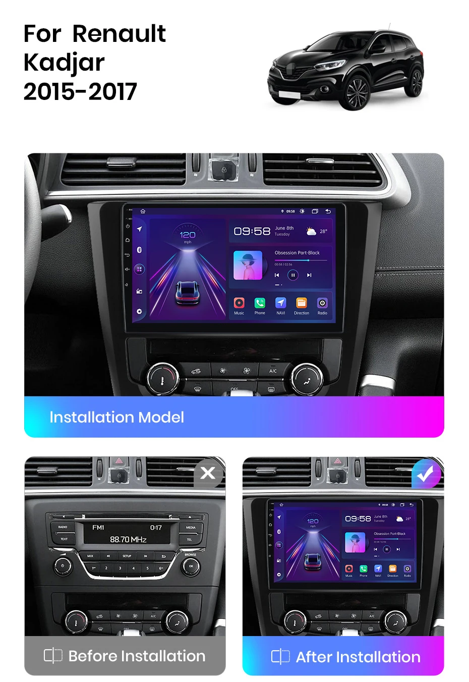 AWESAFE Android 10 для Renault Kadjar 2015 - 2017 Автомагнитола мультимедийные видеоплееры Android Авто CarPlay 2 din dvd