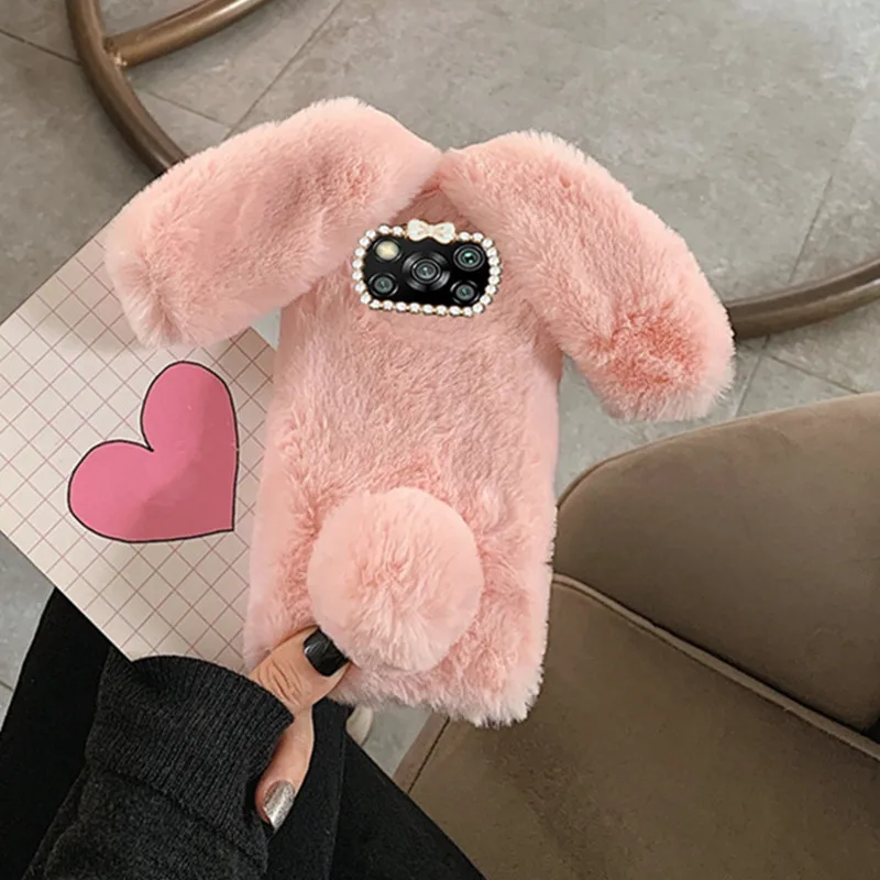 Мягкий силиконовый чехол из кроличьего меха для Xiaomi POCO X3 M3 A...