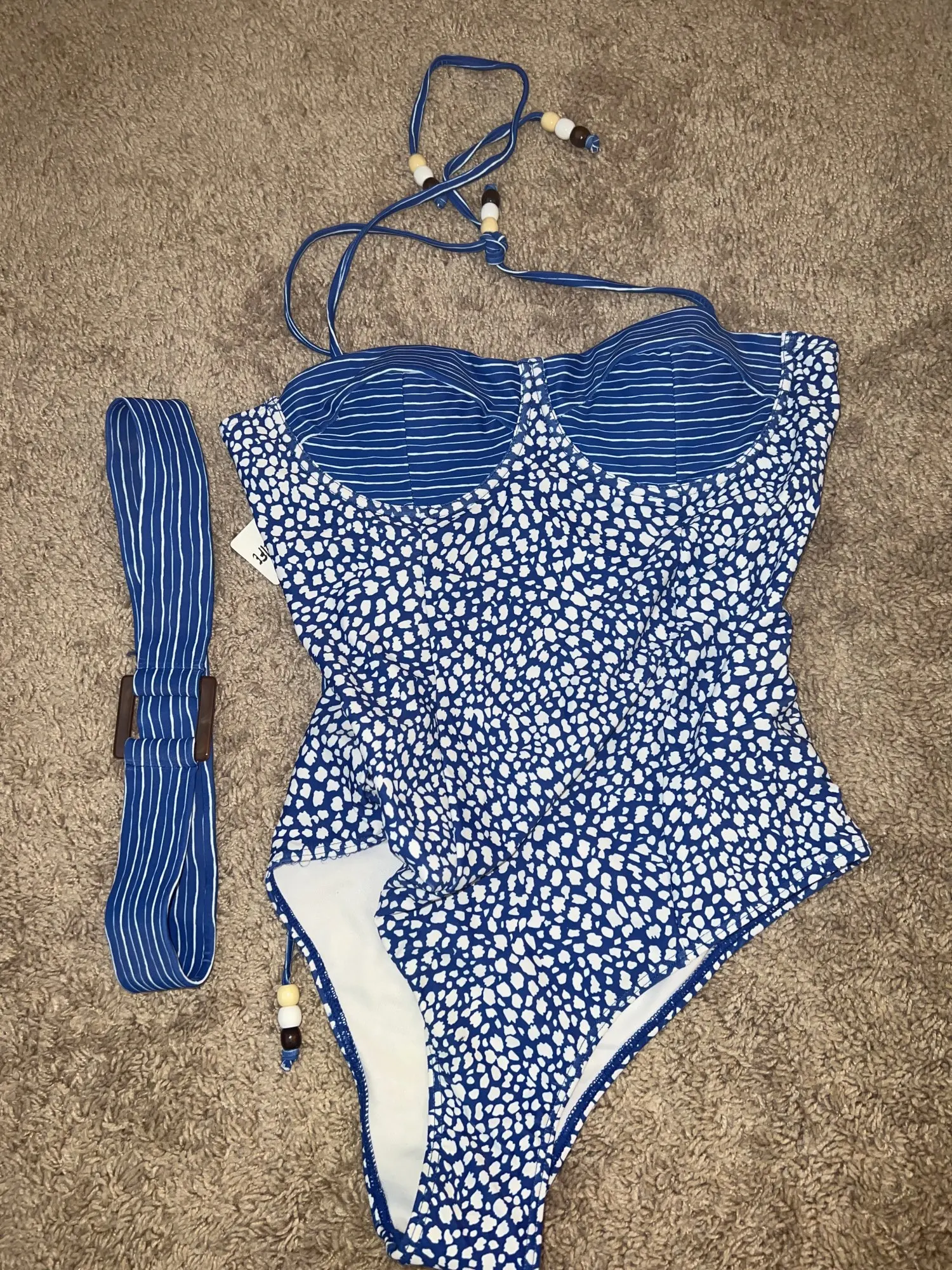 классный слитный купальник. бретели на плечах завязываются и регулируются тем самым. получашки имеют косточки и тонкий вкладыш поролоновый , который можно удалить через специальные отверстия. в качестве декора есть пояс с прямоугольной бляшкой , надевается на талию. можно и без него. Мои параметры 152см / 82-62-84 / 42кг. Больше фото и видео можно посмотреть в моём профиле i n s t a g r a m / t e l e g r a m (imenno_te)