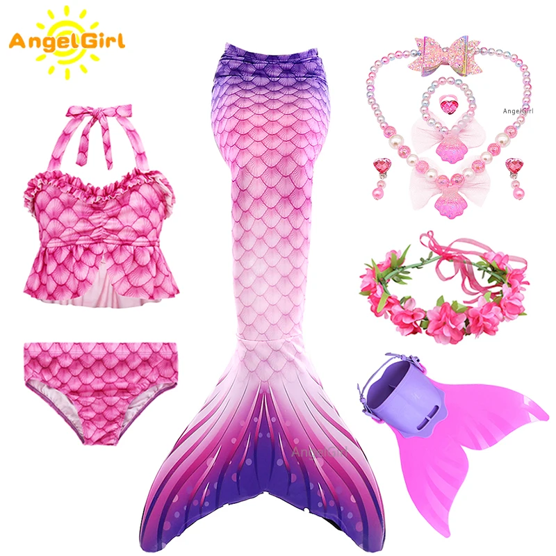 AngelGirl 2022 женское платье с хвостом русалки для плавания с моноластами праздничный костюм русалки купальник детский подарок для детей