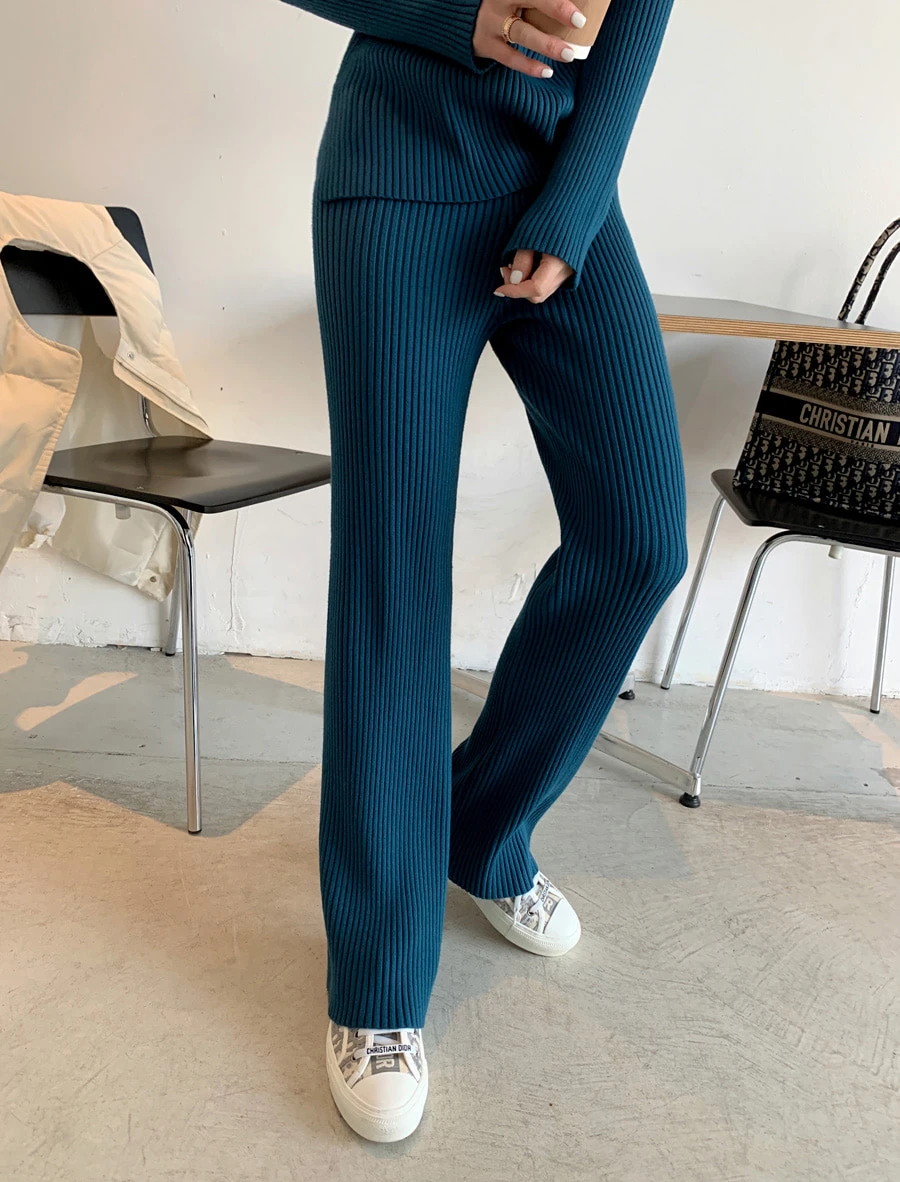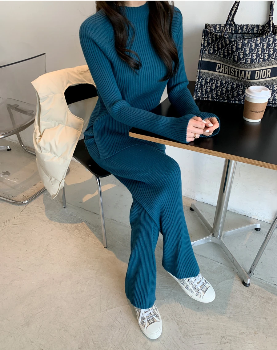Вязаный свитер, винтажный осенне-зимний плотный облегающий пуловер из двух предметов, свитер + длинные брюки с эластичным поясом, комплект из двух предметов 326C