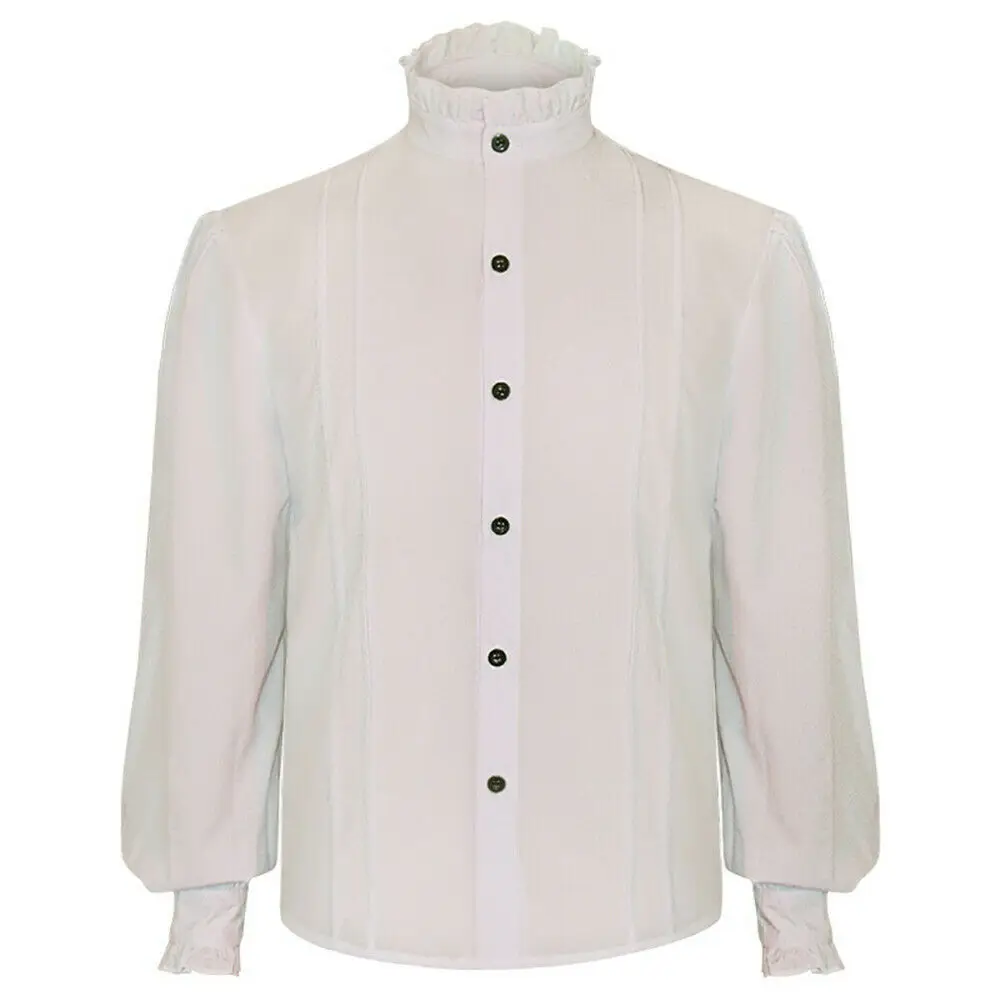 Мужская рубашка в средневековом стиле, рубашка в викторианском стиле, воротник-стойка, Готическая мужская рубашка