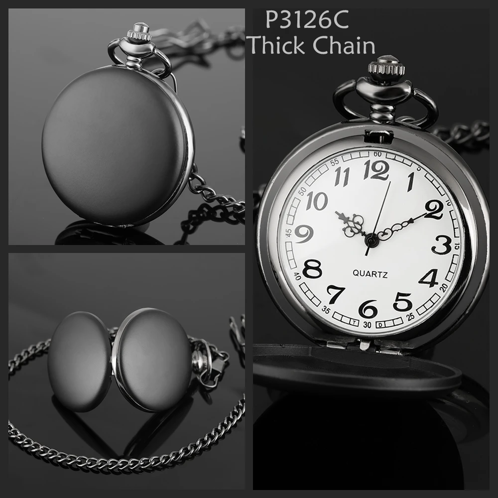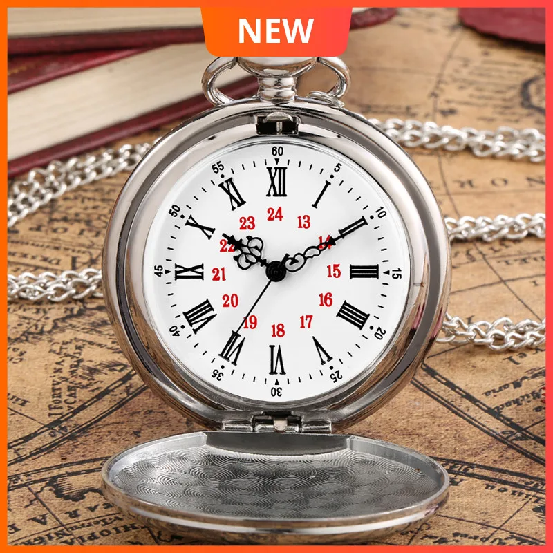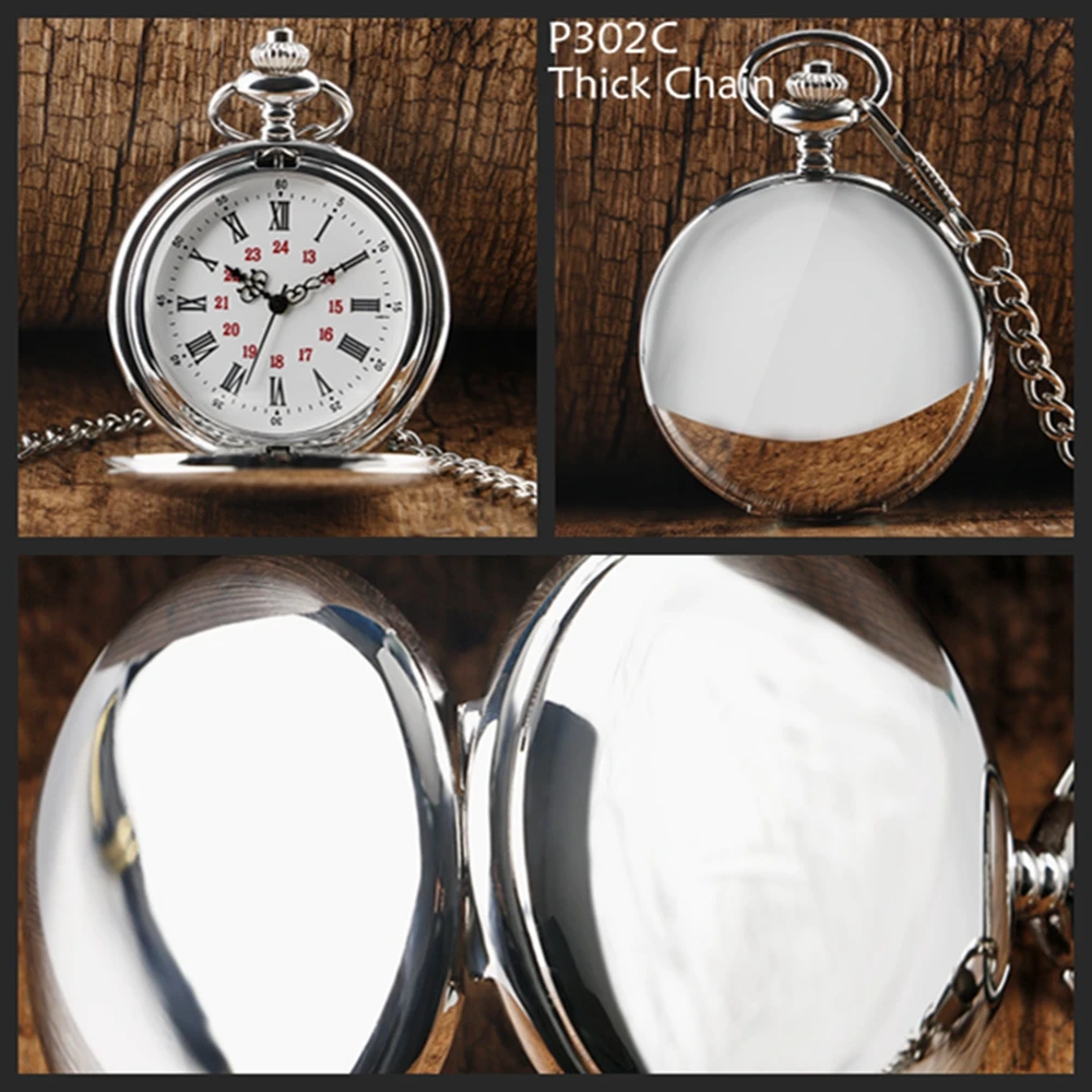 Гладкий серебряный чехол карманные часы для мужчин, элегантный большой белый циферблат с арабскими цифрами карманы часы для мужчин, Премиум сплав грубой цепи кулон часы для папы