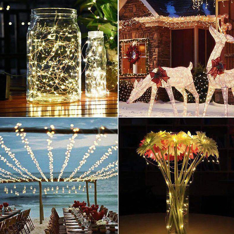 Рождественское украшение, новогоднее садовое светодиодное освещение на солнечной батарее, гирлянда из медной проволоки, занавеска вечерние ринки, праздника, водонепроницаемая светодиодная гирлянда