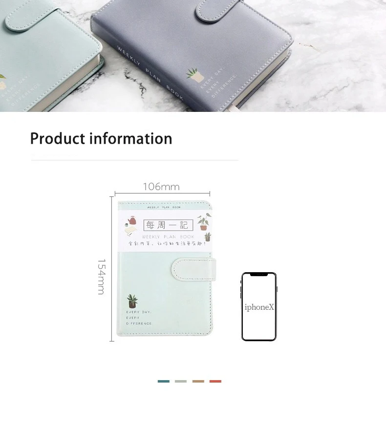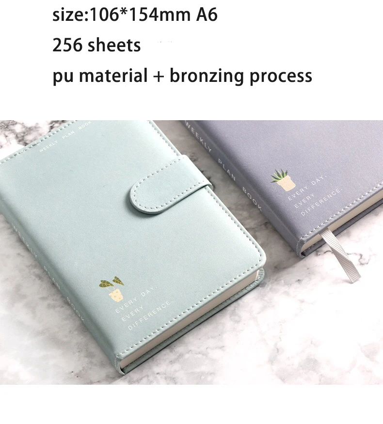 Милый Одноцветный магнитный дизайн с пряжкой 365 дней Еженедельный план дневник планировщик тетради A6 журналы школьные принадлежности канцелярские принадлежности подарок