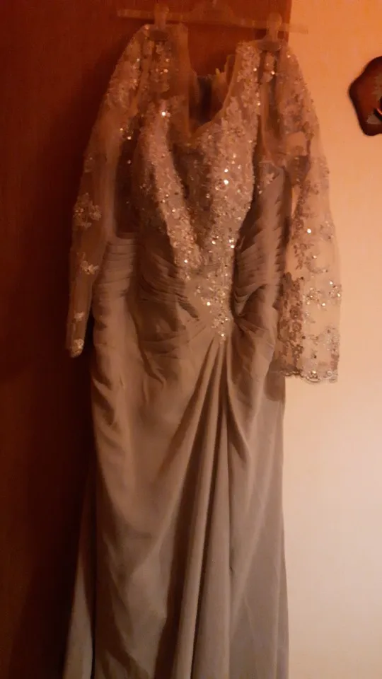 Кружевное шифоновое вечернее платье для матери невесты с длинными р...