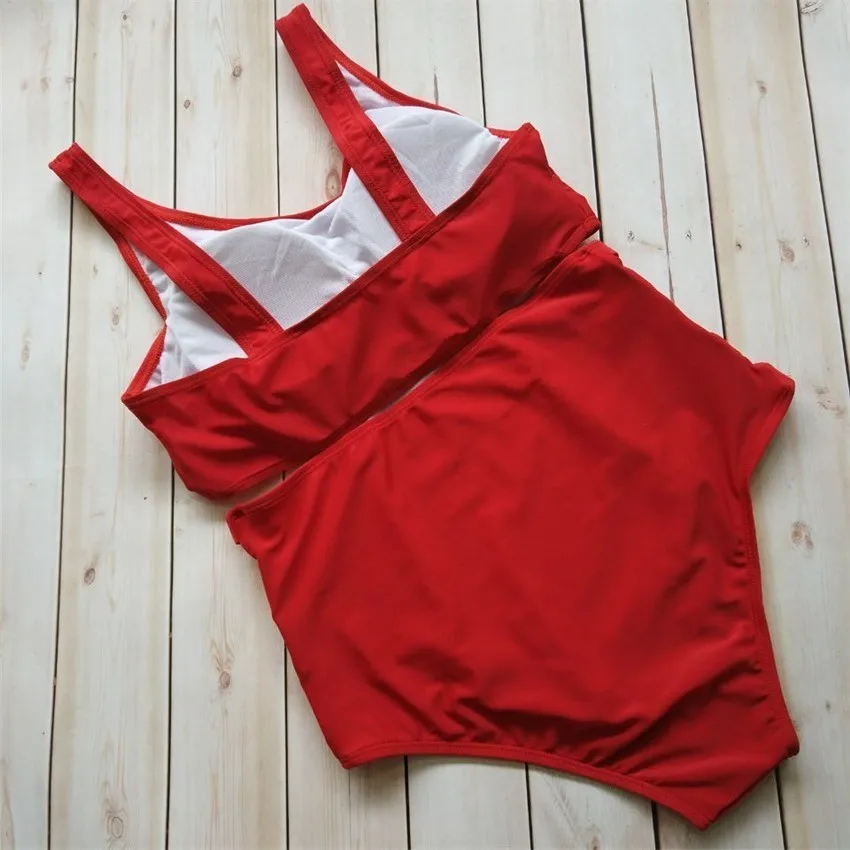 L-XXXL размера плюс купальник пуш-ап цельный купальник с узлом и за...