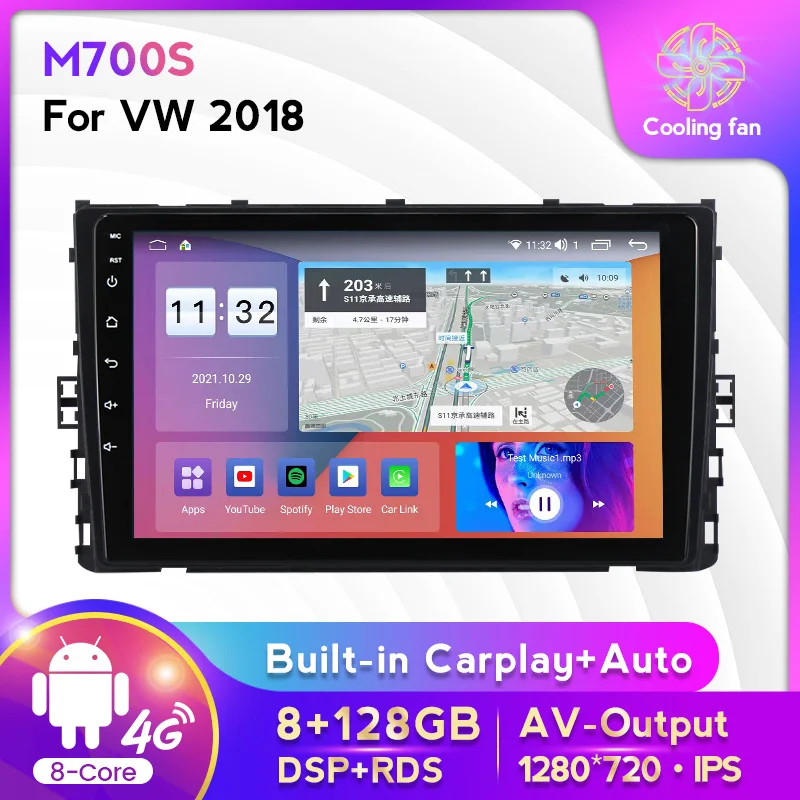 Автомобильное радио с 9 "экраном Android 11 8 + 128G GPS мультимедийный видеоплеер стерео навигация для Volkswagen VW T-Cross MQB 2018 2019 2020