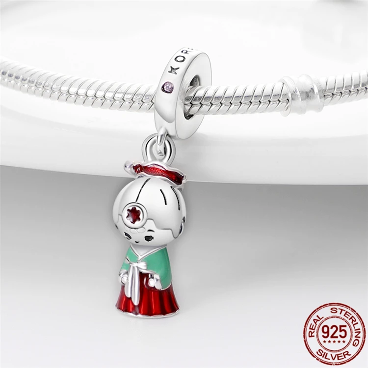 100% Настоящее серебро 925 пробы, красное платье принцессы, бусины, подходит для оригинального браслета и браслета pandora, изготовление ювелирных изделий своими руками