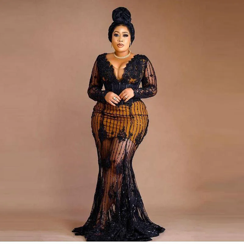 Прозрачное женское платье для выпускного вечера с блестками, вечернее платье-Русалка с аппликацией ace, платье для африканвечерние Aso Ebi, коктейльное платье