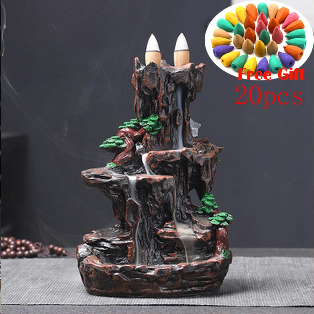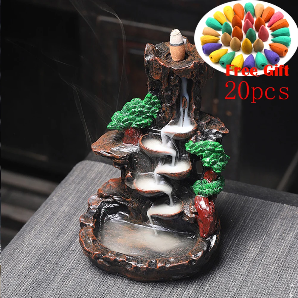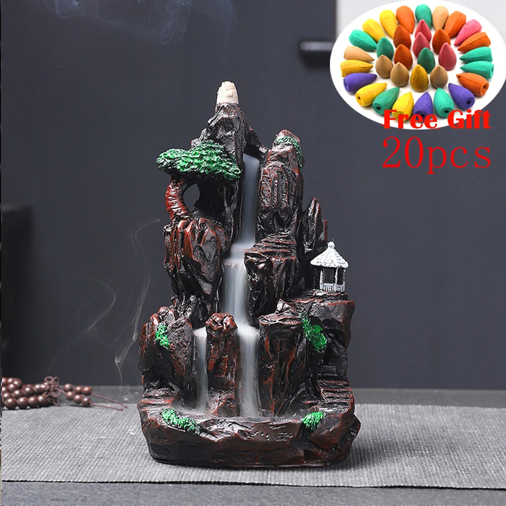 100 конусы для благовоний, горы, река, водопад, курильница, фонтан,...