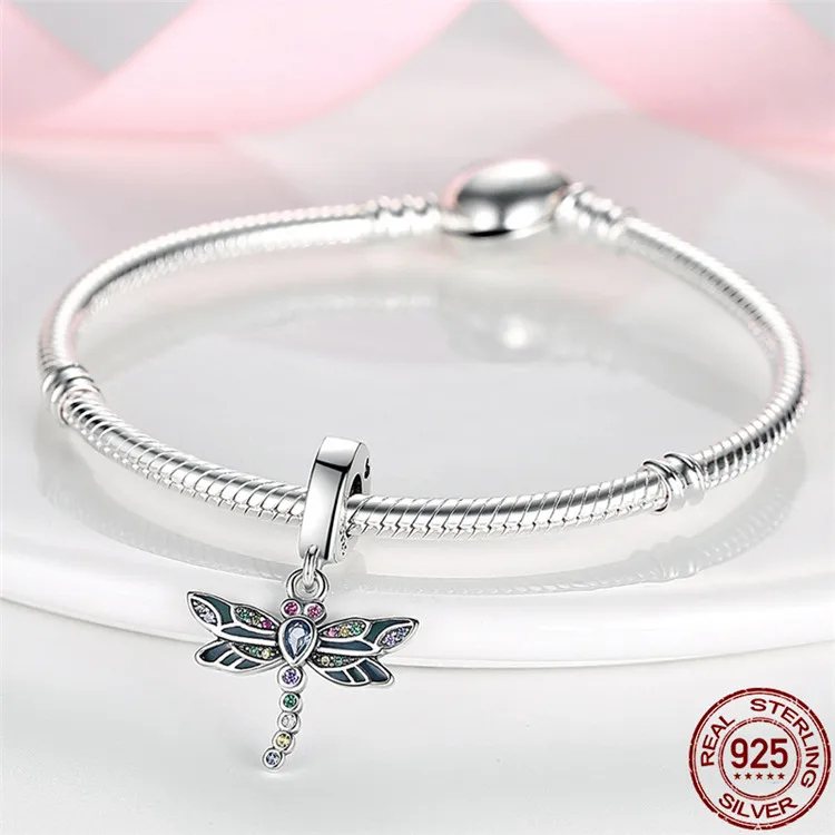 Женский браслет Pandora из серебра 100% пробы, с шармами в виде сам...