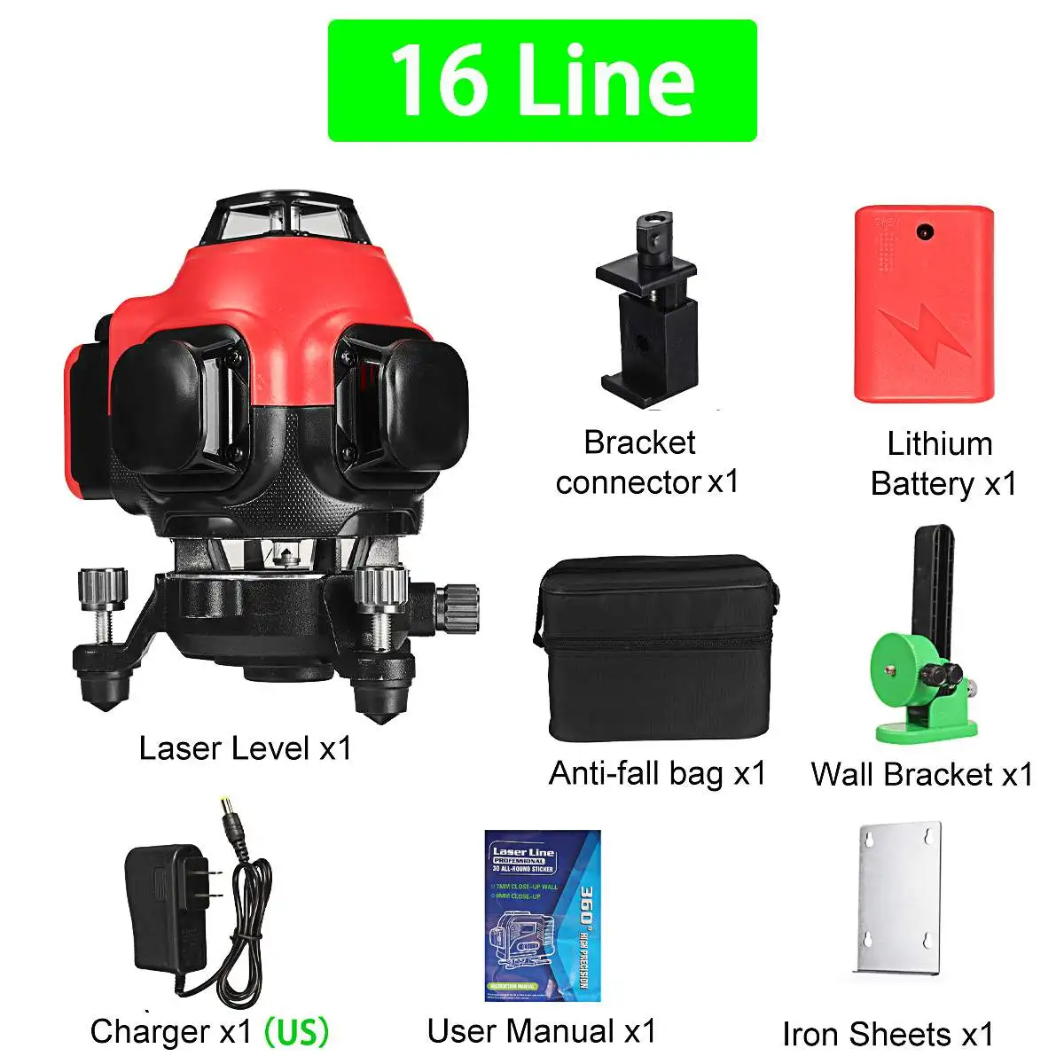 Самонивелирующийся лазерный уровень, 16 линий, 360 градусов, горизонтальный и вертикальный крест
