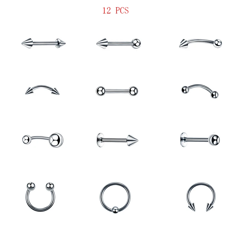 12 шт. серьги-кольца для пирсинга языка губ носа из нержавеющей ста...