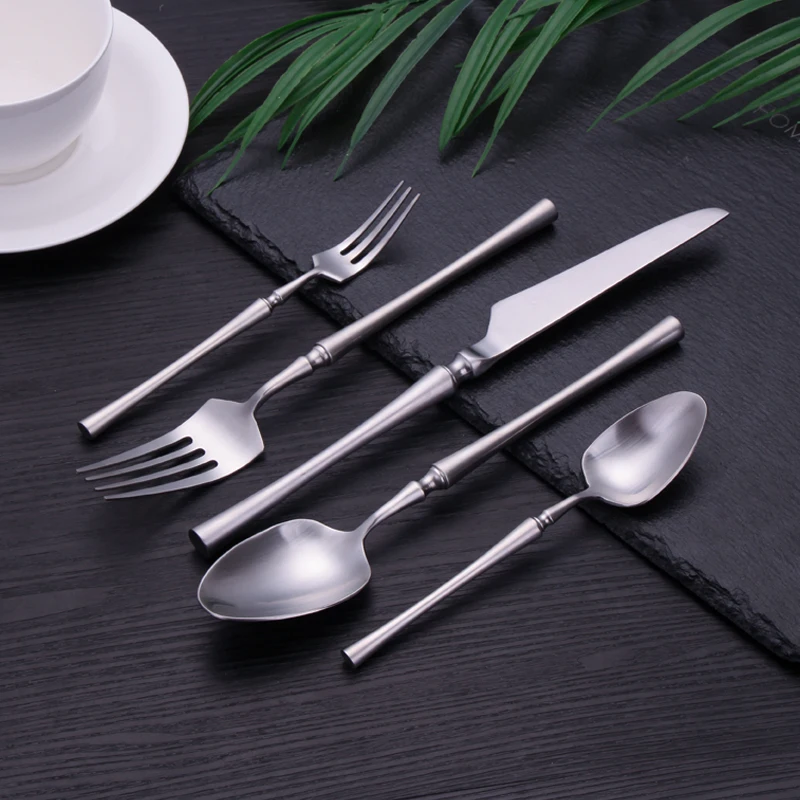 Набор столовых приборов из матового золота, набор столовых приборов из нержавеющей стали, 5 шт. ножей, вилок, ложек, полные кухонные принадлежности для дома
