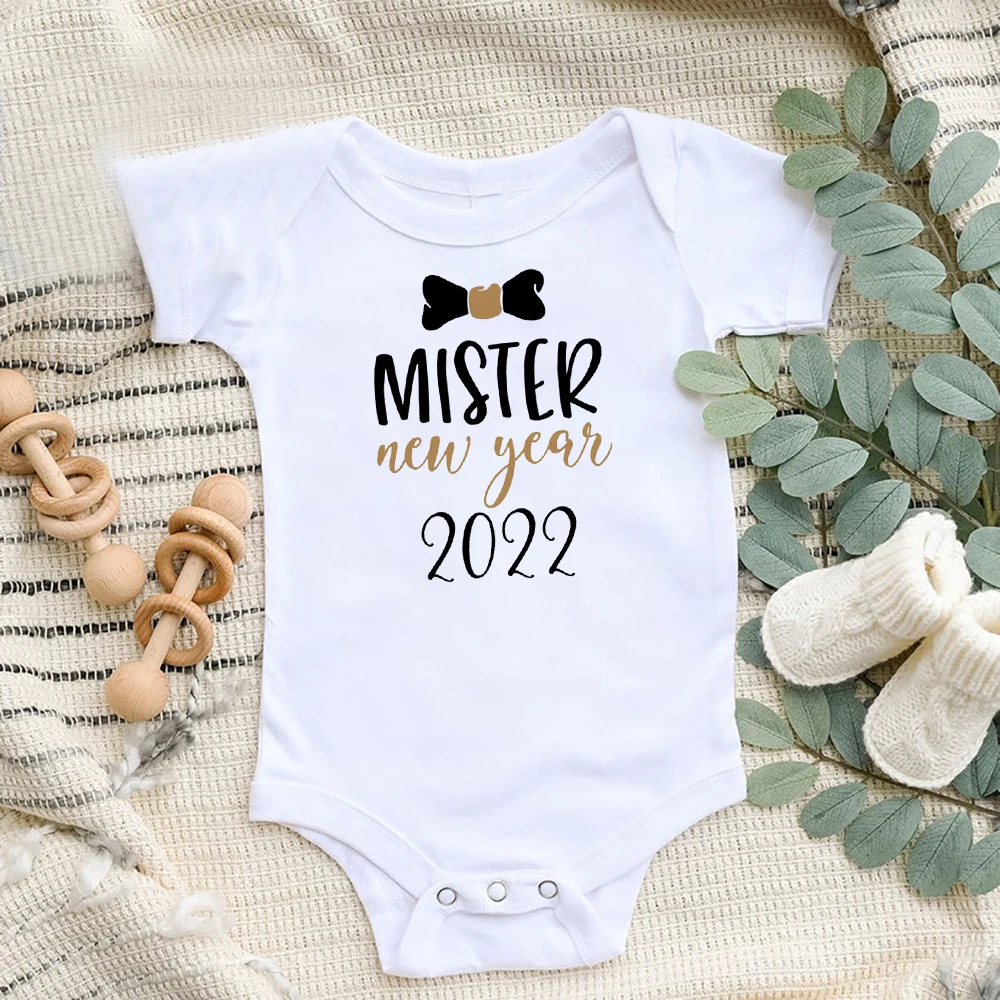 С Новым Годом 2022 комбинезон для маленьких девочек с коротким рукавом белый комбинезон наряд для новорожденных Одежда для младенцев объявление ребенка новогодний подарок