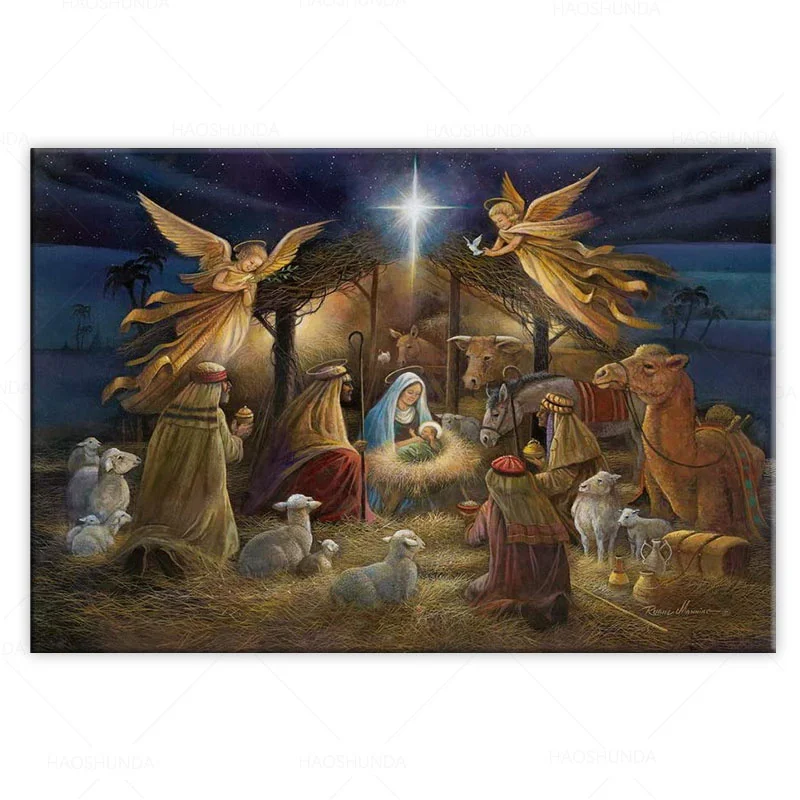 Настенная Картина на холсте с изображением дня рождения Иисуса Христа, Рождественский Декор, Современная картина маслом, Настенный декор для церкви